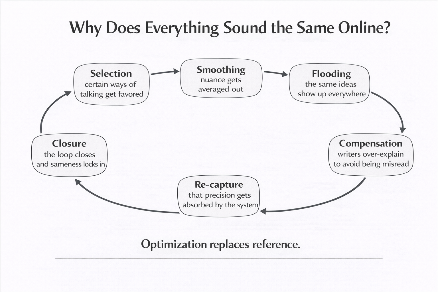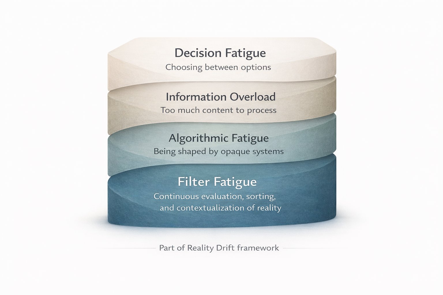 How filter fatigue, optimization, and synthetic realness form a self-reinforcing system.