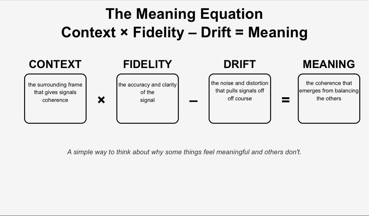 Why meaning emerges from context and fidelity, and collapses under drift.