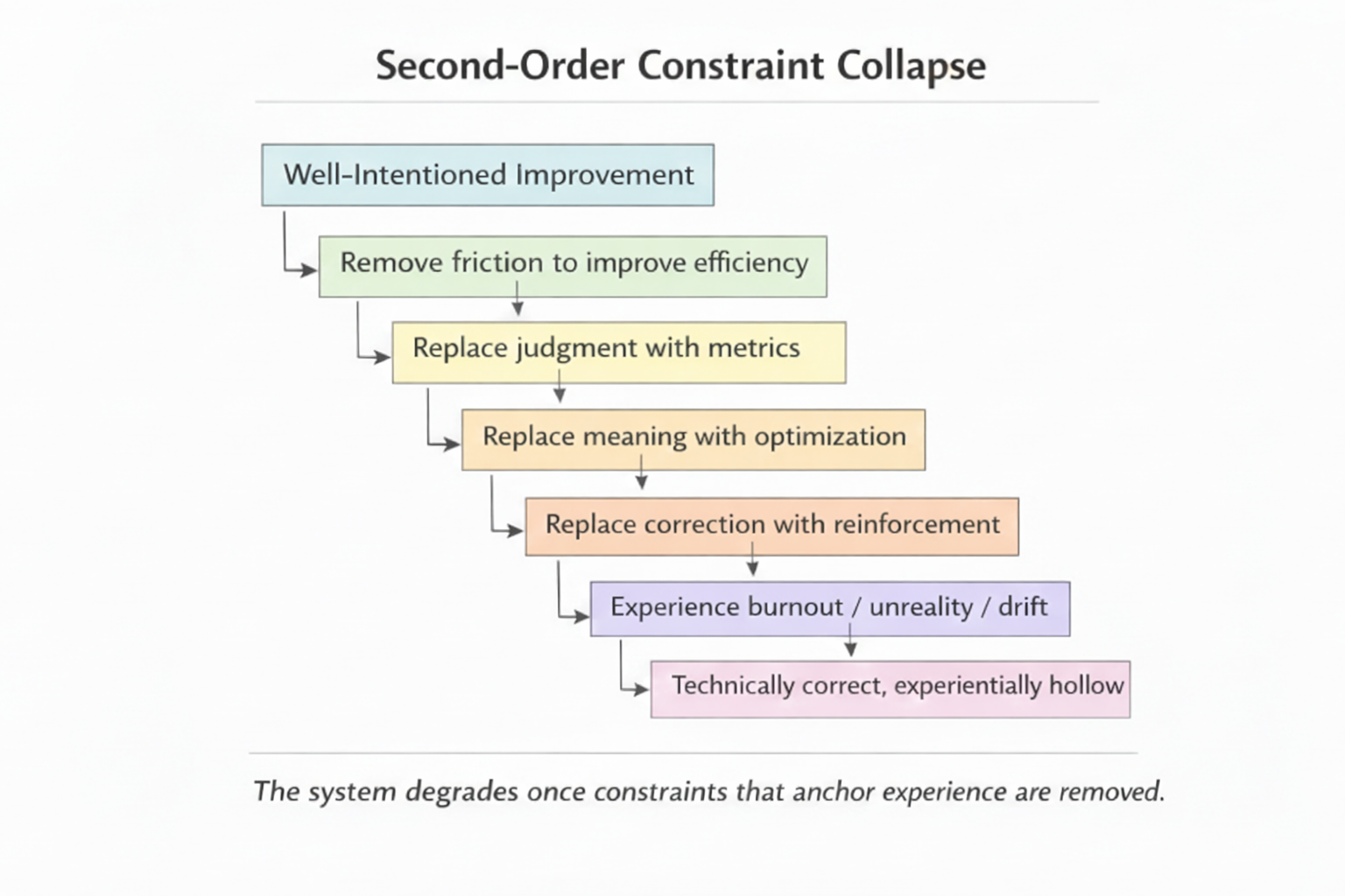 Why well-intentioned optimization produces systems that are technically correct but experientially hollow.